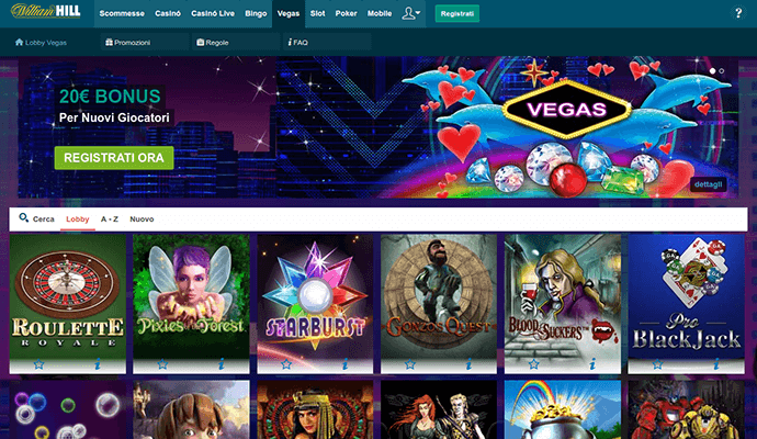 Fondata nel 1934, William Hill è uno dei marchi più famosi nel settore dei casinò. Il casinò online presenta un enorme catalogo di giochi in grado di accontentare tutti i gusti. Qualsiasi cosa ti piaccia, slot o giochi da tavolo, temi seri o allegri, scommesse di ogni tipo, troverai un’opzione adatta alle tue esigenze, mentre il gran numero di promozioni e metodi di pagamento può da solo costituire il motivo per sceglierlo come il tuo casinò.