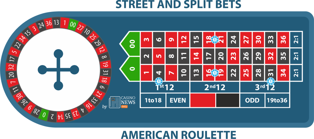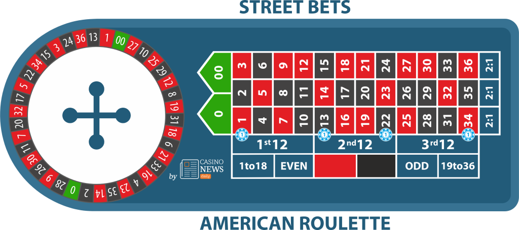 Un fatto curioso è che due combinazioni di terzine (puntate su una fila) sulla ruota americana sono spesso utilizzate dai giocatori professionisti. Queste combinazioni tendono ad essere molto efficaci, perché coprono intervalli di otto numeri e non lasciano lacune.